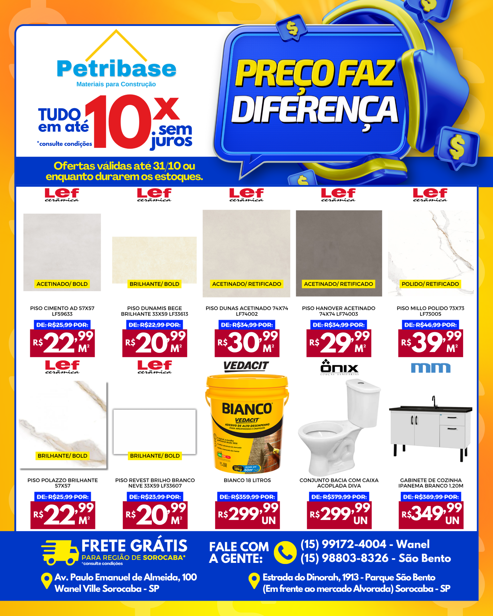 No mês de março de 2000, surge a Petribase, empresa varejista do segmento da construção civil, sediada no bairro Wanel Ville I, na cidade Sorocaba/SP.